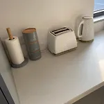 Parmi les équipements indépendants fournis, vous trouverez une cuisine complète avec un grille-pain, un four et une vaisselle.
